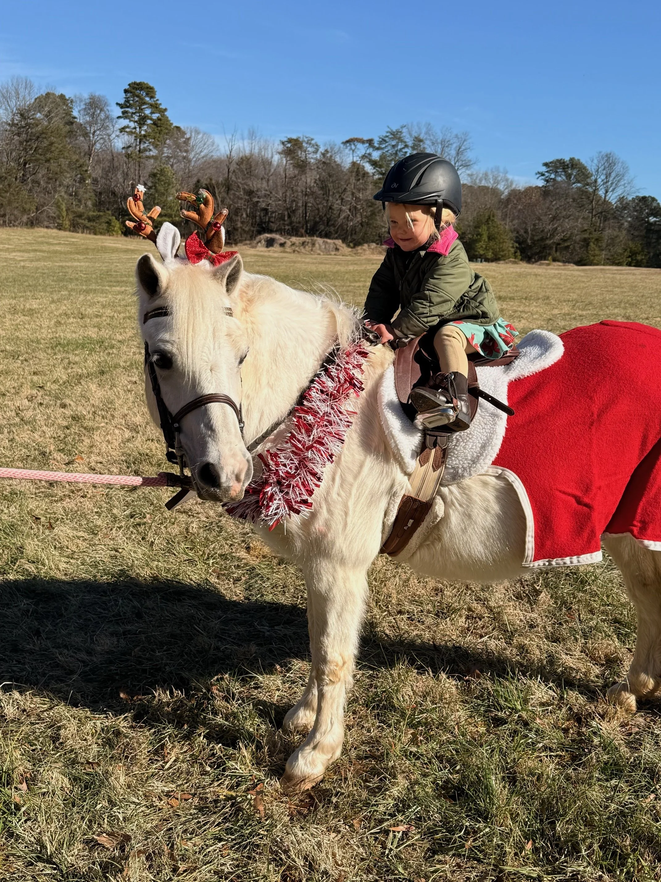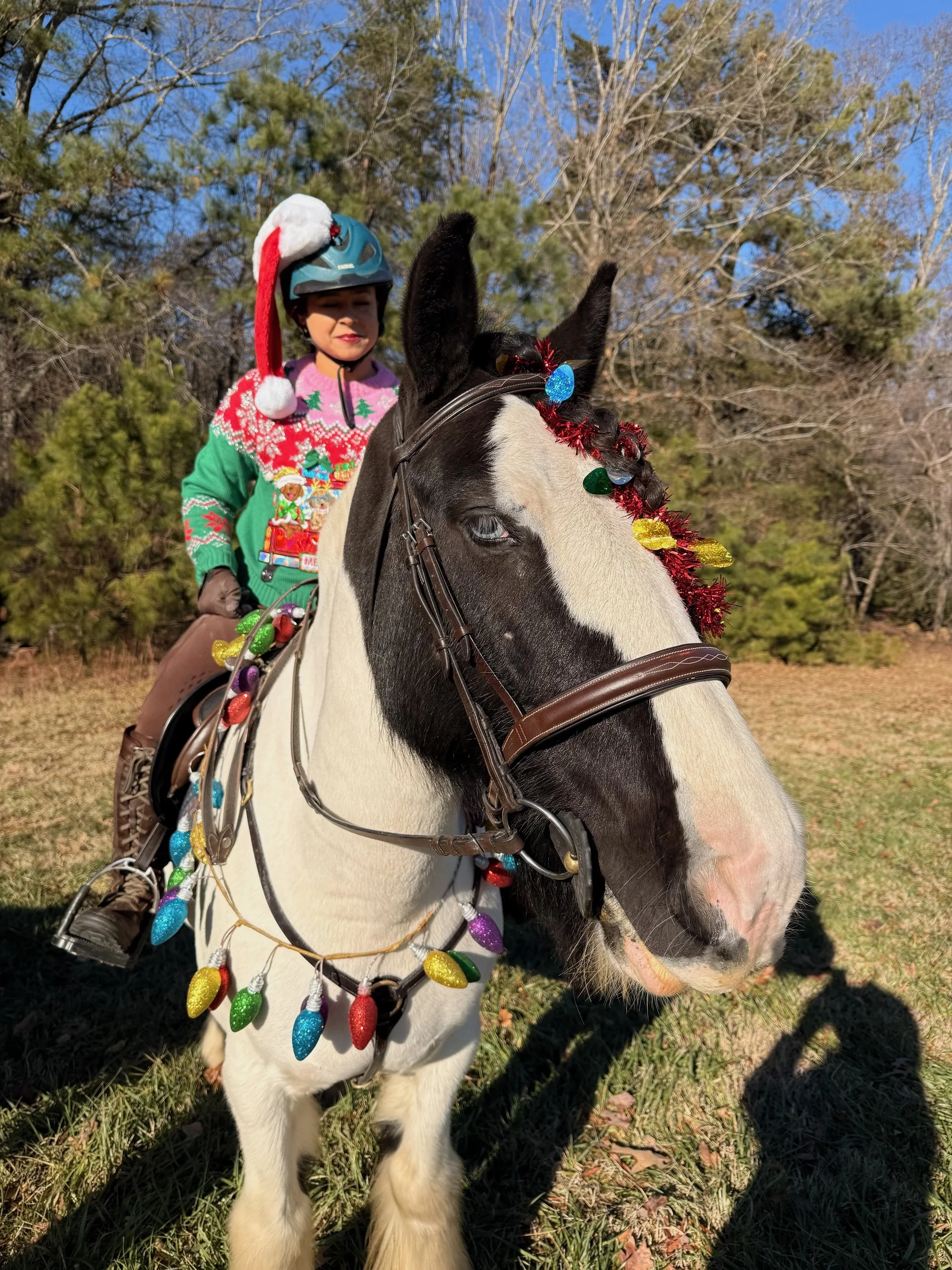 The tinsel was flowing and the reindeer horns were firmly affixed between velvet ears in December at DRHC. Ninety-five riders and their mounts showed up on a gorgeous December day in full holiday regalia to compete in our “Stocking Stuffer” team ride.