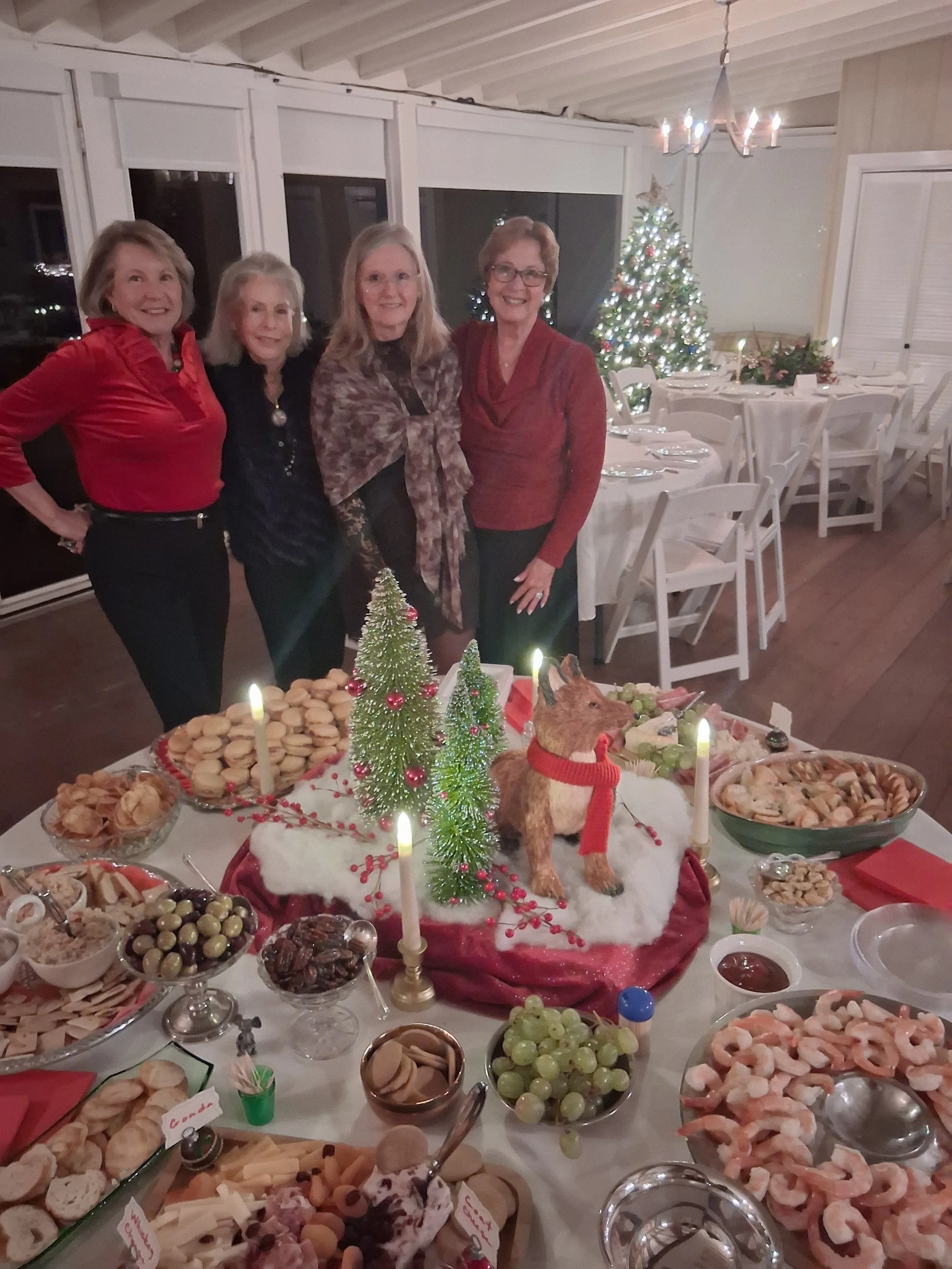 Hostesses Wendy Woods, Jonnah Barber, Joy Robinson, and Pam Stinson welcome guests at the Candlelight Supper
